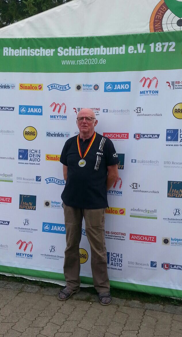 Der erfolgreichste Schütze des Schützenvereins Herdorf ist Franz Josef Nassauer. Seit sieben Jahren ist er „Dauergast“ bei den Deutschen Meisterschaften der Sportschützen. Bereits zum dritten mal nach 2013 und 2014 gewann er die Silbermedaille in seiner Paradedisziplin Zimmerstutzen mit Federbock. Und in diesem Jahr war es mal wieder ganz besonders knapp. Mit 283 Ringen fehlte nur ein einziger Ring zur Goldmedaille. Der 70-jährige ist aber guten Mutes: „Irgendwann klappt das mit dem Gold“. Seine Schützenbrüder drücken ihm jedenfalls sämtliche Daumen.   (Pressebericht)