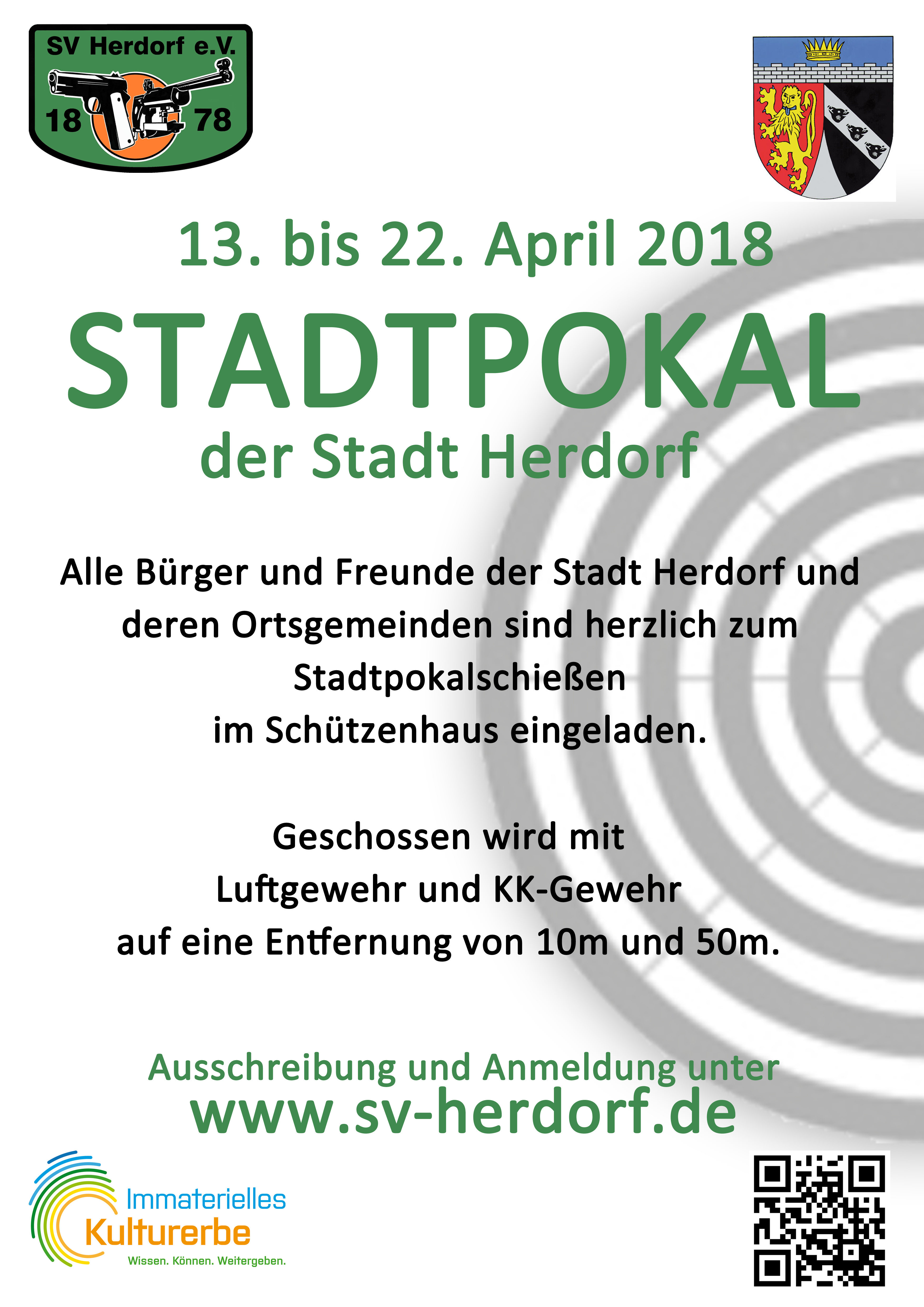 Nach einer viel zu langen Pause haben wir uns entschlossen, das in der Vergangenheit bewährte Stadtpokalschießen der Stadt Herdorf und deren Ortsgemeinden, wieder aufleben zu lassen. Damit diese Veranstaltung ein Erfolg für Stadt und Verein wird, hoffen wir auf rege Teilnahme.