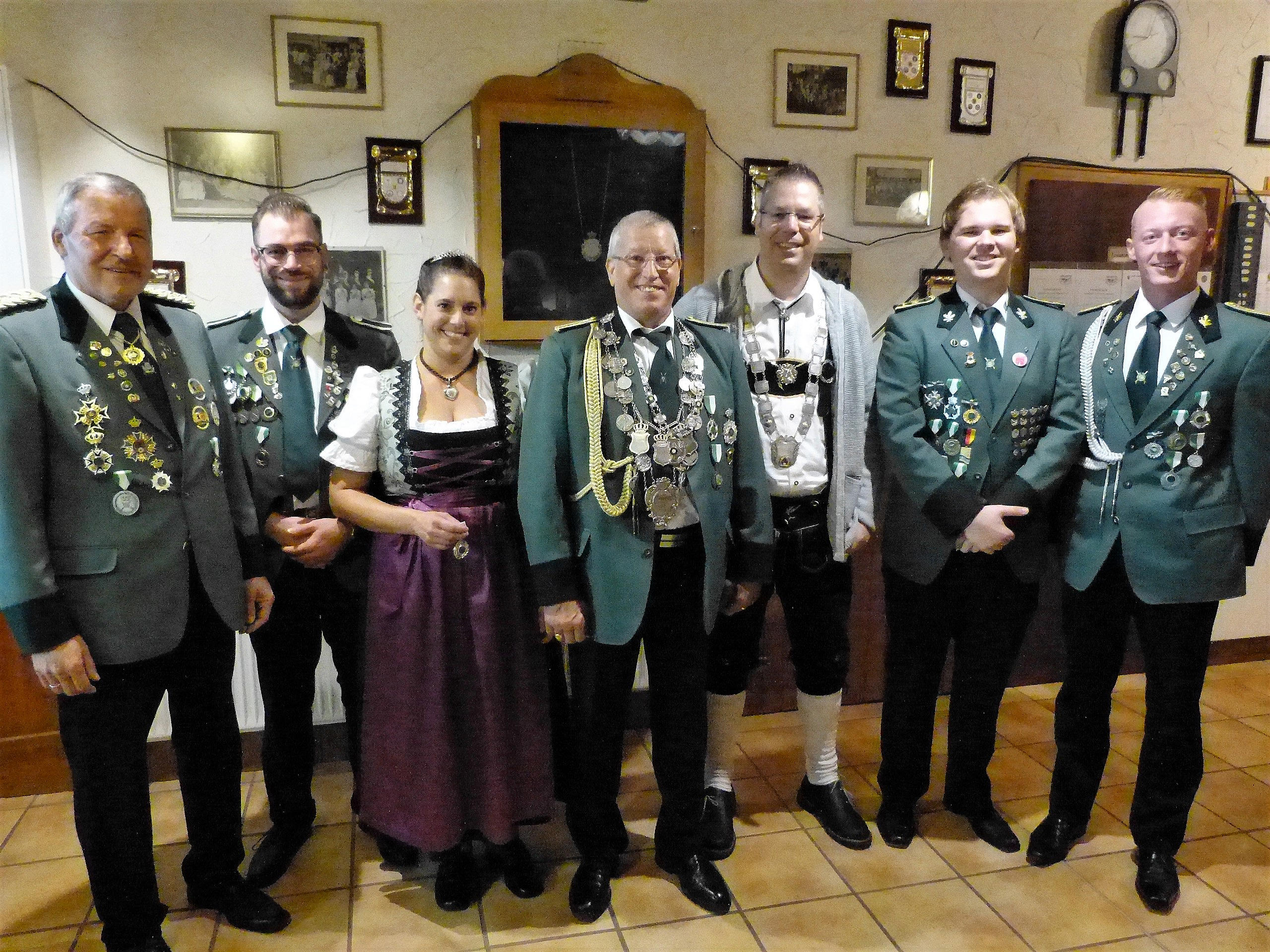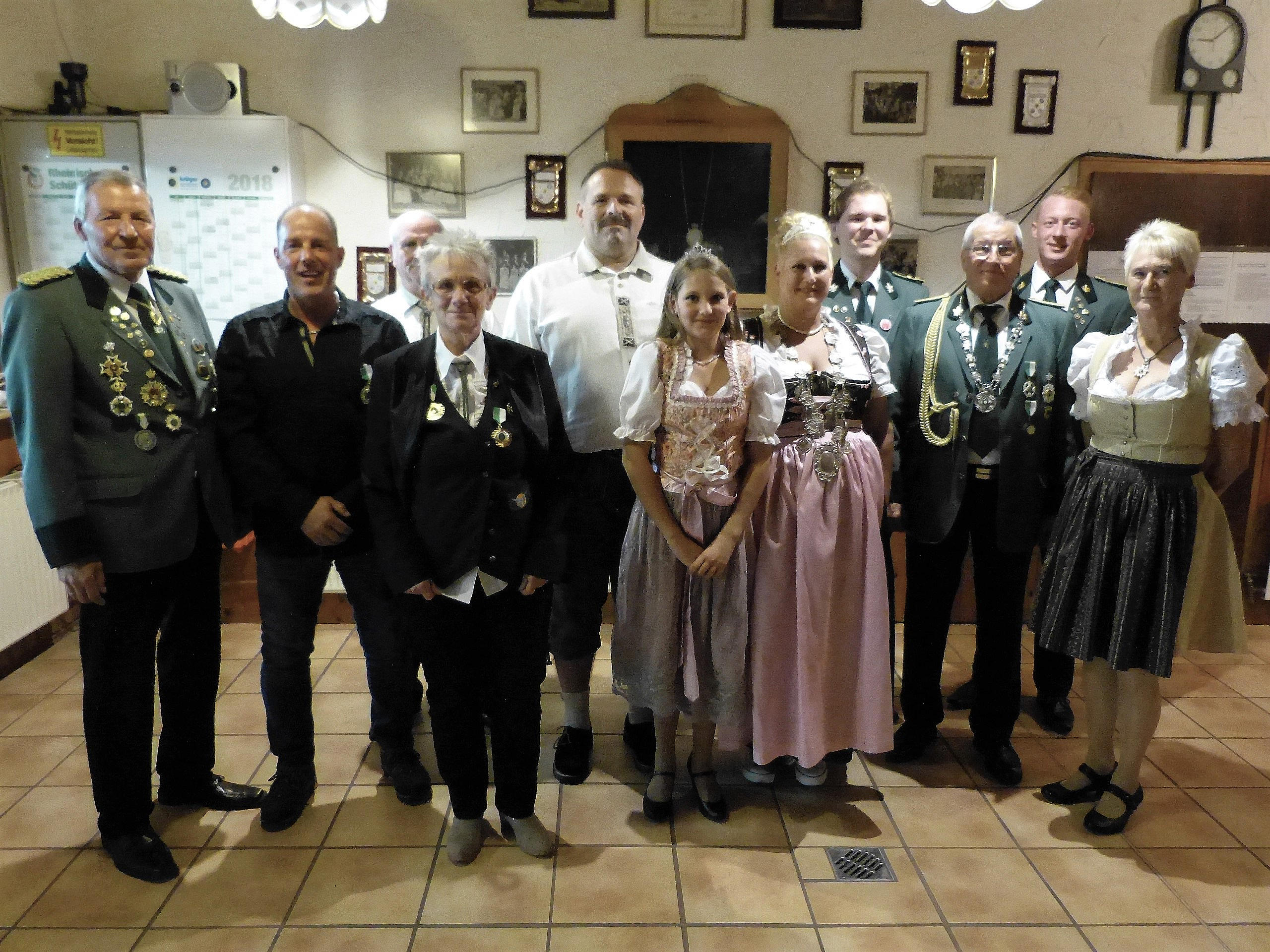 Von den 23 Teilnehmern beim Vogelschießen holten sich Franz Solbach die Krone, Dietrich Splett das Zepter, Inge Fischer den Reichsapfel, Nico Harms den linken Flügel, Wolfgang Vogt den rechten Flügel und Franz Solbach den Stoß. Als neue Schützenkönigin löste Marina Krah ihren Vater Franz Solbach ab.