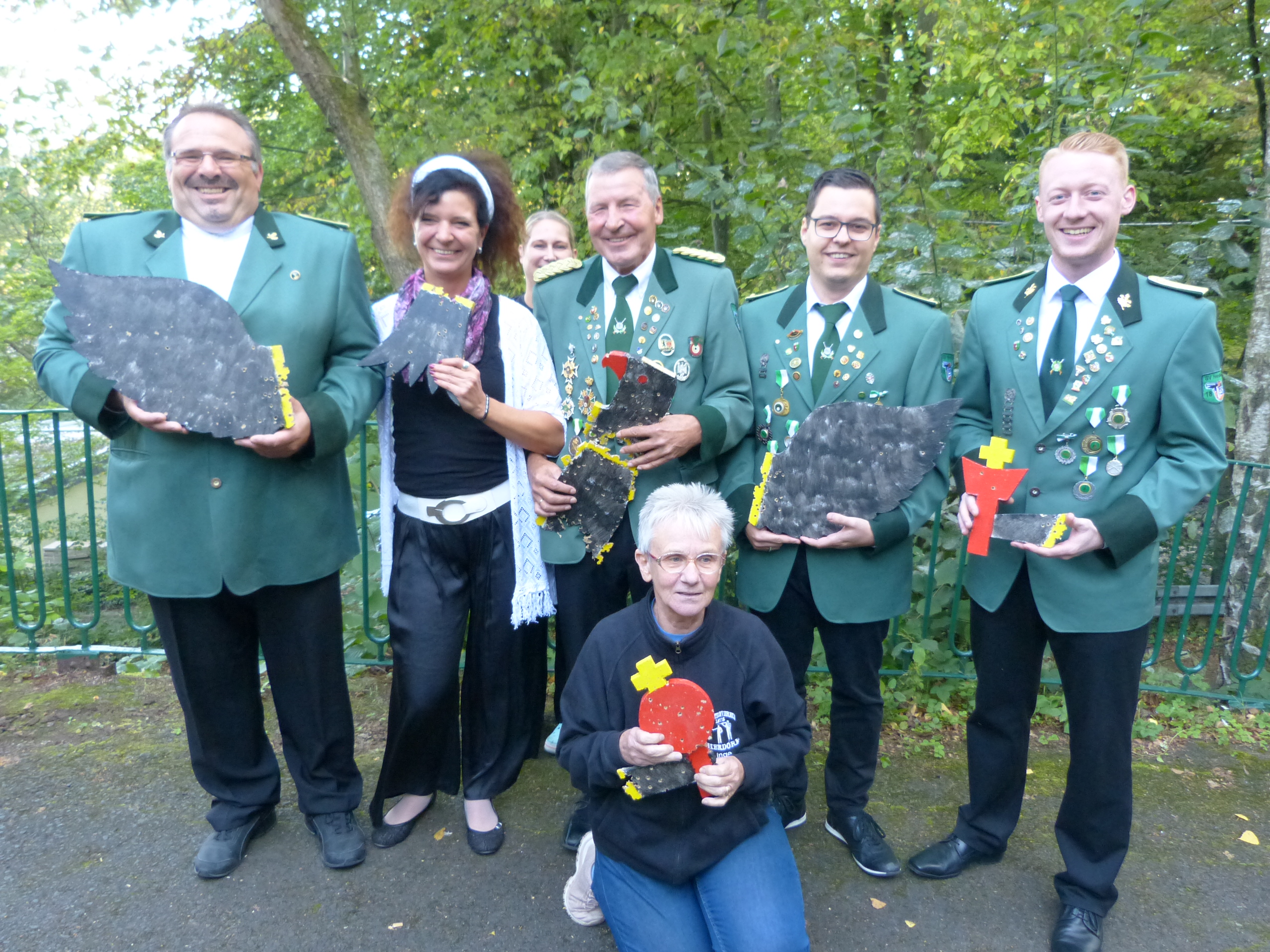 Bestes Wetter hatte sich der Schützenverein Herdorf von 1878 bestellt. Die Sonne lachte vom Himmel und auch die Schützen hatten an diesen Samstag Nachmittag ihren Spaß. Der 1. Vorsitzende Felix Kemper konnte 24 Teilnehmer auf die Jagd auf den vom Ehrenvorsitzenden Reinhard Stinner „gebauten“ Aar schicken. Mit dem 1. Ehrenschuss holte sich die noch amtierende Königin Marina Krah die Krone. Und dann ging es im Halbstundentakt weiter. Der 1. Vorsitzend Felix Kemper schoss mit dem 31. Schuss das Zepter, Inge Fischer errang 58 Schüsse später den Reichsapfel. Der linke Flügel ging nach 74 weiteren Schüssen an Markus Krah, der rechte Flügel nach 62 Schüssen an Chris Vogt. Den Stoß holte sich bei ihrem Debüt Petra Solbach. Nach einer „Stärkungspause“ von einer halben Stunde gingen dann sage und schreibe 11 Schützen an den Start um den Rest des Vogels von der Stange zu holen. Schon mit dem 237. Schuss „erlegte“ nach nur eineinhalb Stunden Wolfgang Vogt für alle (und auch für sich selbst) völlig überraschend den Rest des Vogels. Dies war nach 1996, 2008 und 2016 bereits das vierte Mal, dass er die Regentschaft über die Herdorfer Schützen errang. Nach der Verteilung der Insignien packten dann Reinhard Stinner und Franz Solbach die Gitarren aus und gaben noch etliche Lieder zum Besten. Die Schützen feierten mit ihren Gästen aus Daaden, Struthütten, Altenseelbach und Neunkirchen bis in die späten Abendstunden ihre neuen Würdenträger. Die feierliche Krönung des neuen Schützenkönigs findet am 28.09.2019 um 20:00 Uhr beim Schützenball im Schützenhaus an der „Stahlert“ statt. Dazu sind alle recht herzlich eingeladen.